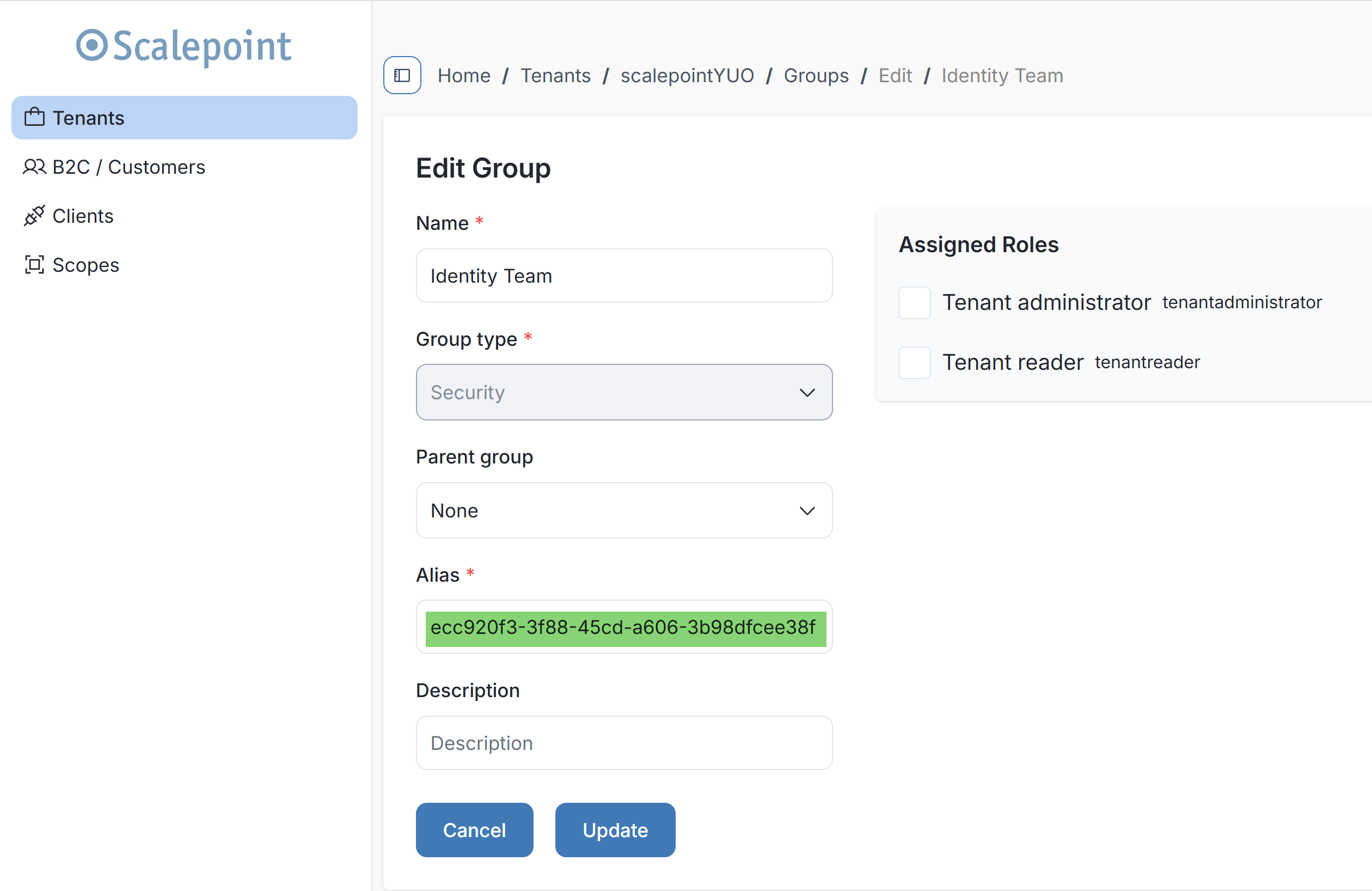 In order to map a user group, you need the group alias in Scalepoint to match the Entra group's Object ID.